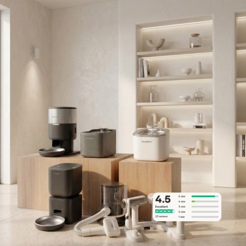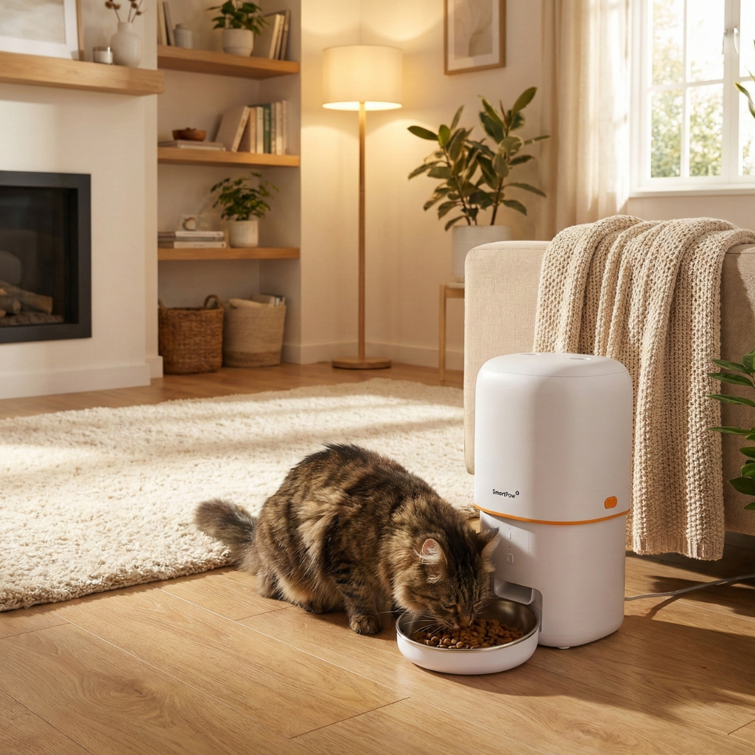 Vergeet nooit meer eten te geven, stel voedingschema's in en bekijk live jouw huisdier